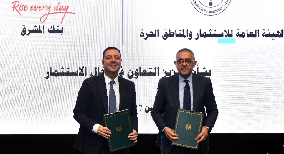 وقع حسام هيبة، الرئيس التنفيذي للهيئة العامة للاستثمار والمناطق الحرة، وعمرو البهي، الرئيس التنفيذي لبنك المشرق مصر مذكرة تفاهم بشأن تعزيز التعاون في مجال الاستثمار.