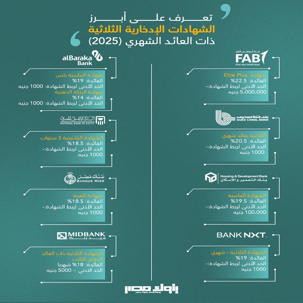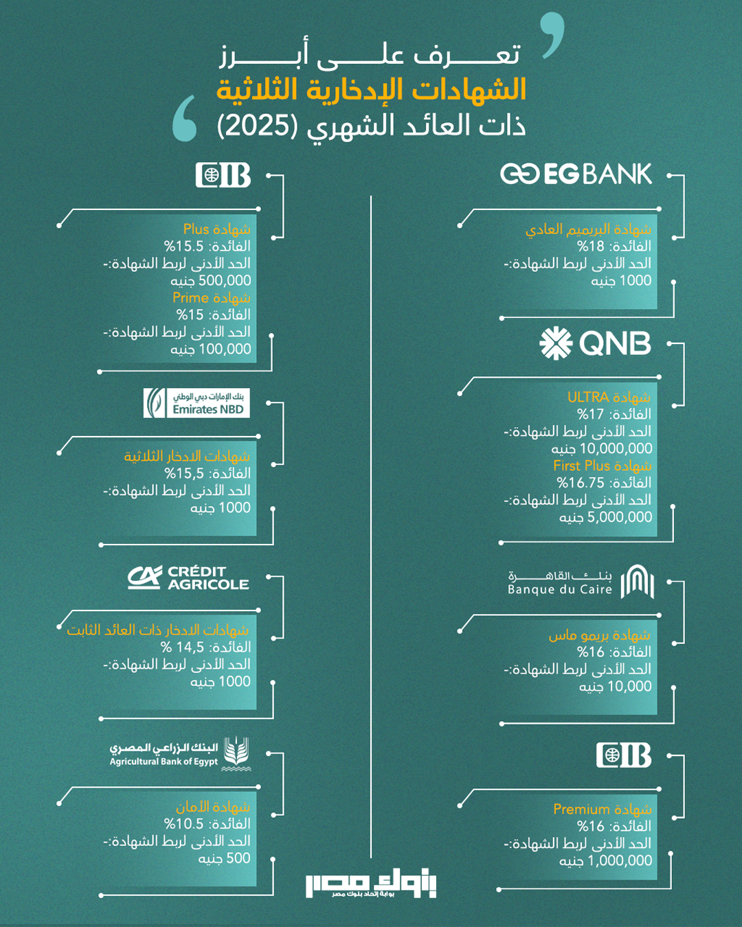 انفوجرافيك تعرف على أبرز الشهادات الإدخارية الثلاثية ذات العائد الشهري (2025) بواسطة بنوك مصر 12 يونيو، 2025 كتب بنوك مصر 12 يونيو، 2025 النشر 0FacebookTwitterPinterestLinkedinWhatsappTelegramCopy LinkEmail 832FacebookTwitterPinterestLinkedinWhatsappTelegramCopy LinkEmail أرصدة الشهاداتأسعار العائد على الشهاداتالشهادات الإدخارية الثلاثيةالشهادات الادخاريةالعائد الشهري النشر 0 FacebookTwitterPinterestLinkedinWhatsappTelegramCopy LinkEmail بنك قناة السويس يتصدر ارتفاعات أسهم البنوك بالبورصة بمستهل تعاملات اليوم قفزة في الاحتياطي النقدي الأجنبي لمصر منذ تولي حسن عبدالله قيادة البنك المركزي