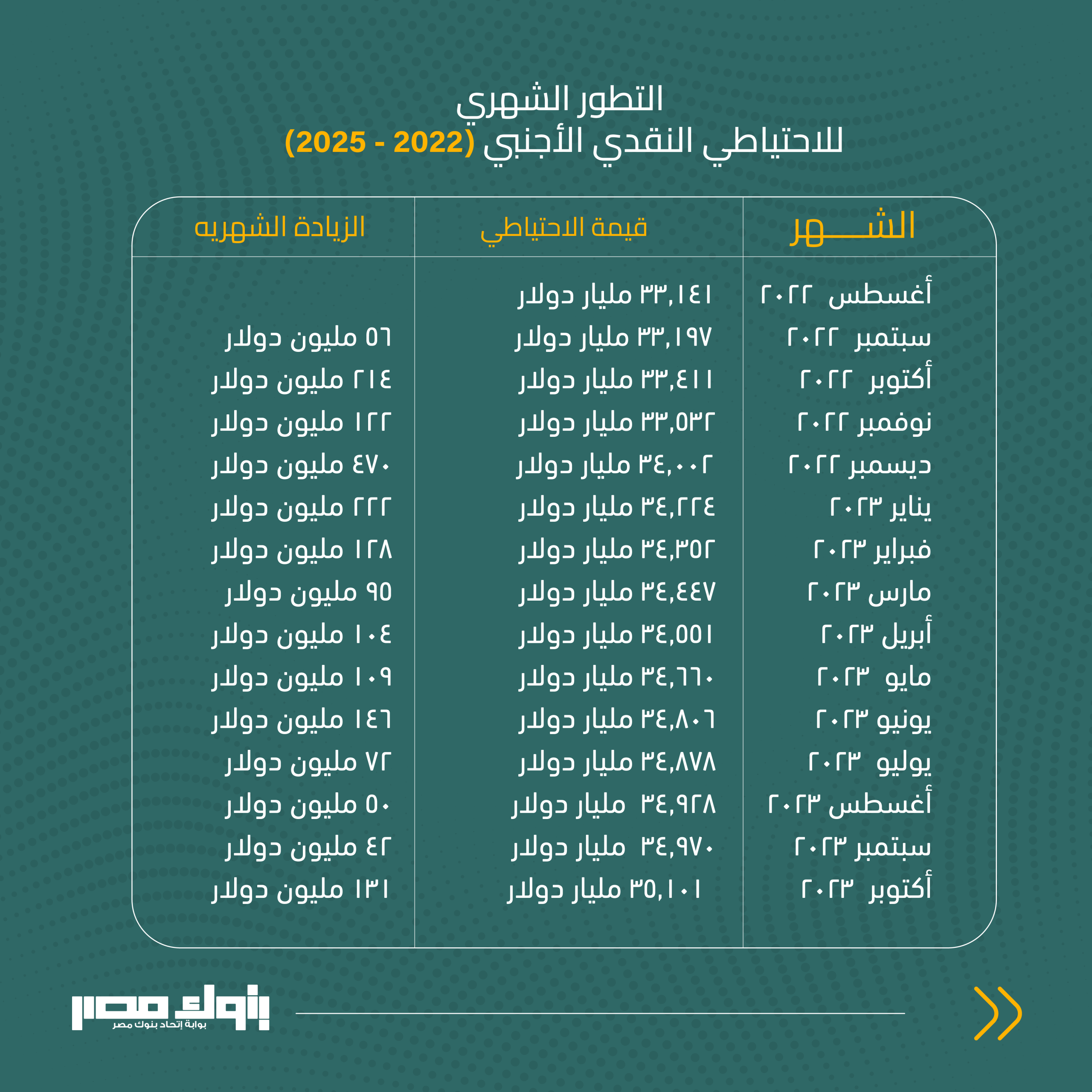 أغسطس 2023 34,928 مليار دولار زيادة 50 مليون دولار
