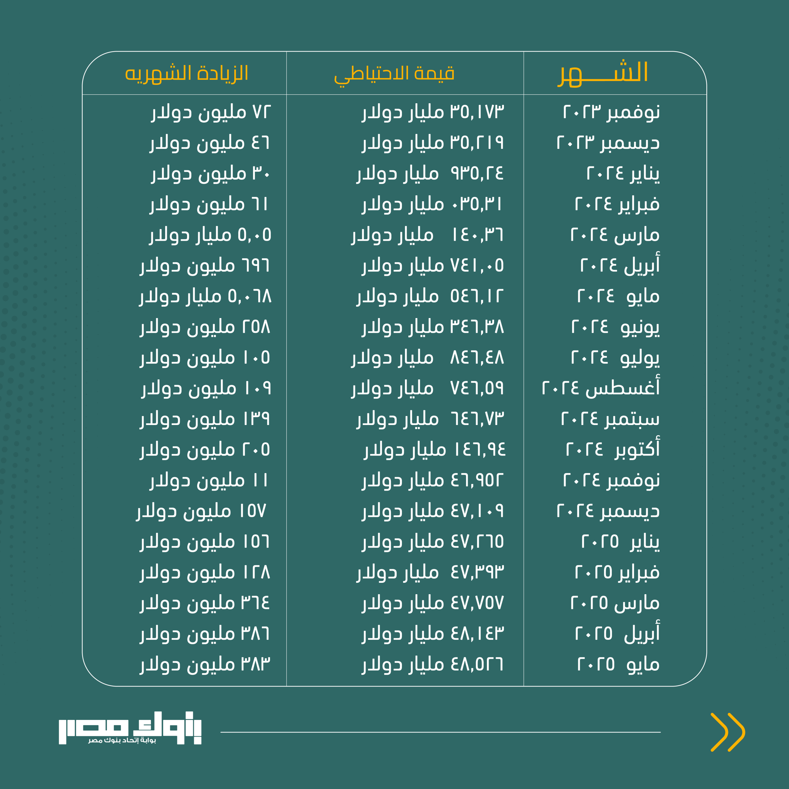 مايو 2025 48,526 مليار دولار زيادة 383 مليون دولار
