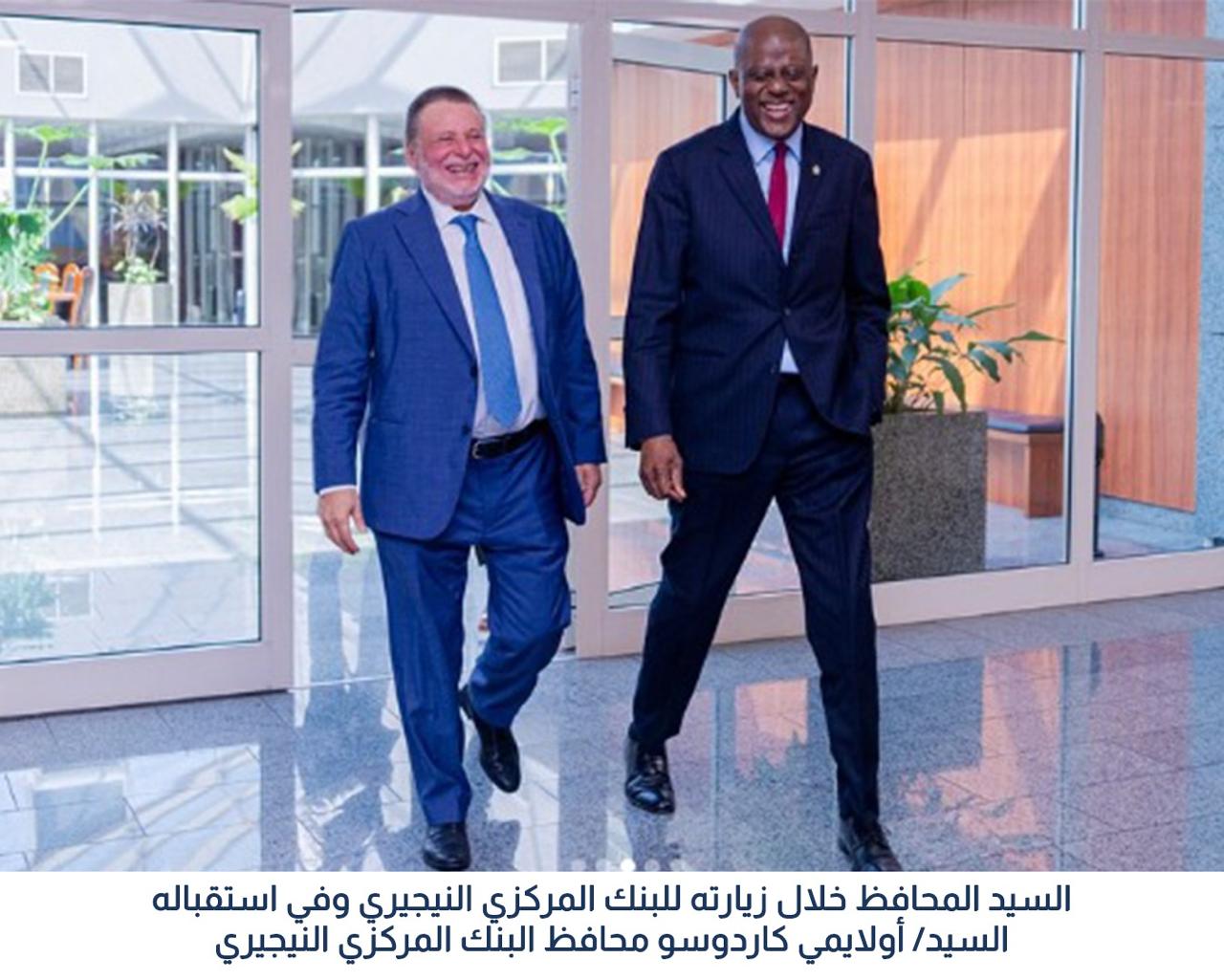 كما قام المحافظ بزيارة رسمية إلى مقر البنك المركزي النيجيري تلبيةً لدعوة من نظيره النيجيري أولايمي كاردوسو ، الذي كان في استقباله. وقد بحث الجانبان سبل تعميق التعاون المشترك بين البنكين في عدد من المجالات، منها تعزيز الاستقرار المالي، ودعم الابتكار في مجالات التكنولوجيا المالية والتحول الرقمي، وتوسيع آفاق التعاون على المستوى العابر للحدود.