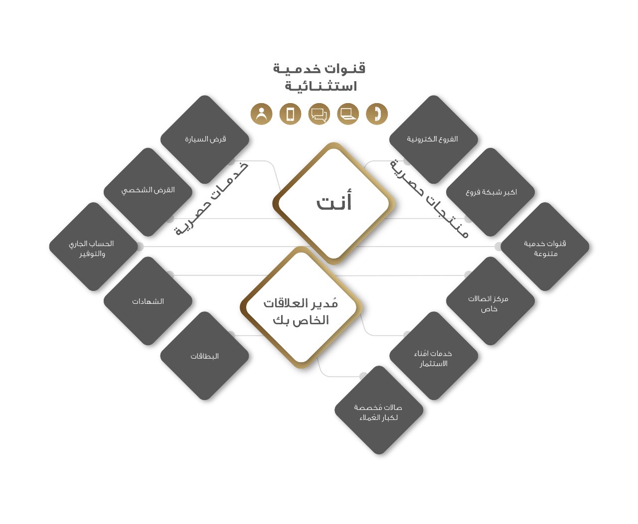 • فريق متخصص ومدير علاقات لإدارة جميع احتياجاتكم المصرفية وتعاملاتكم مع البنك.