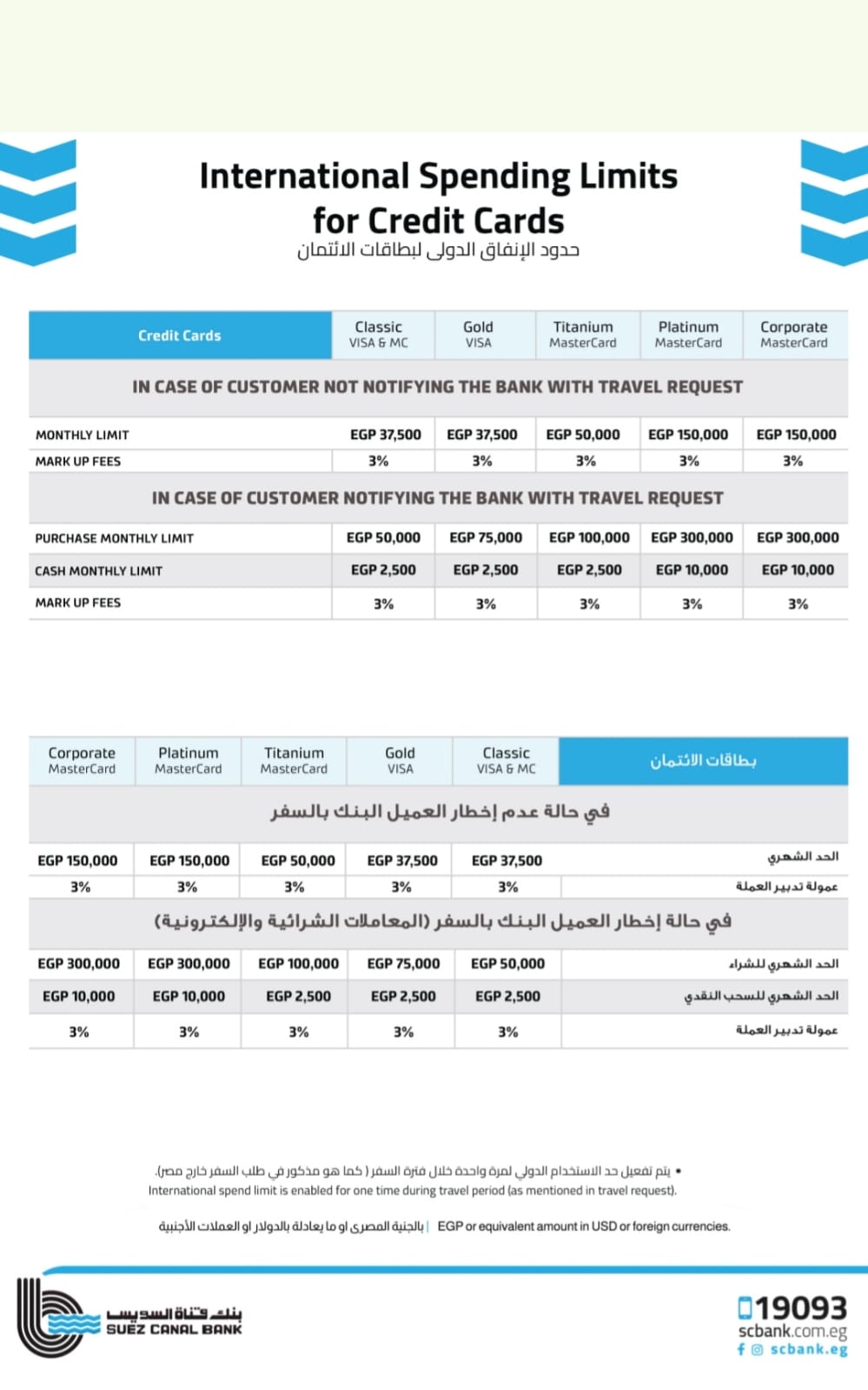 أعلن بنك قناة السويس عن خفض رسوم تدبير العملة الأجنبية علي بطاقات الائتمان من 5% إلي 3%، وذلك في إطار حرص البنك علي التيسير علي عملائه، وتلبية احتياجاتهم المالية، كما قرر بنك قناة السويس رفع حدود الاستخدام الدولي للبطاقات الائتمانية.