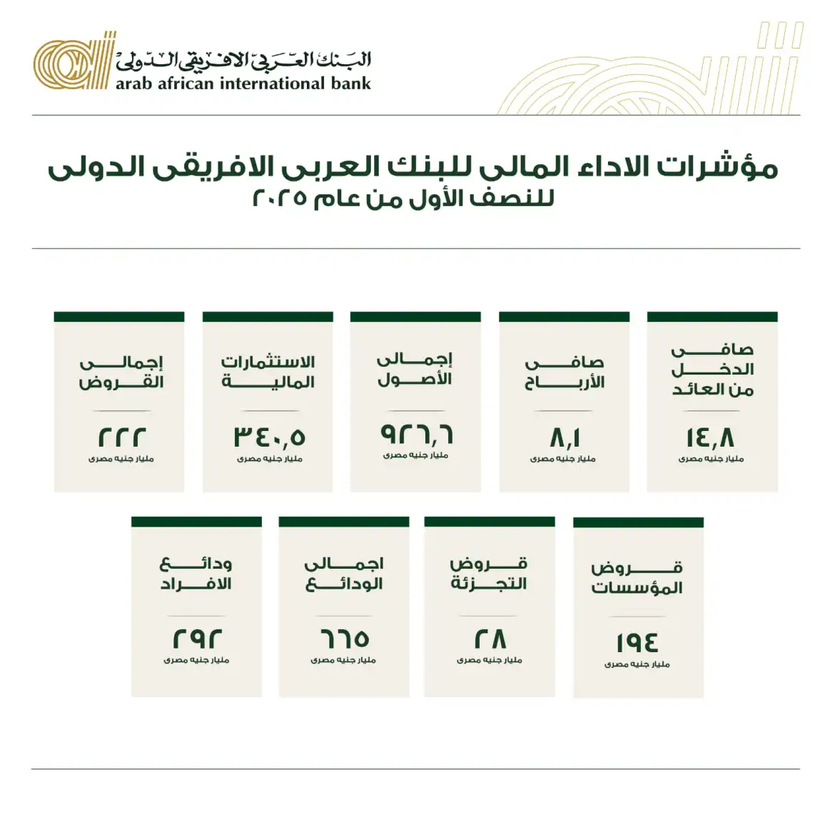 حقق البنك العربي الأفريقي الدولي صافي أرباح بقيمة 8.1 مليار جنيه خلال النصف الأول من العام الجاري، بنمو سنوي 25%، في حين وصل صافي الدخل من العائد إلى 14.8 مليار جنيه.