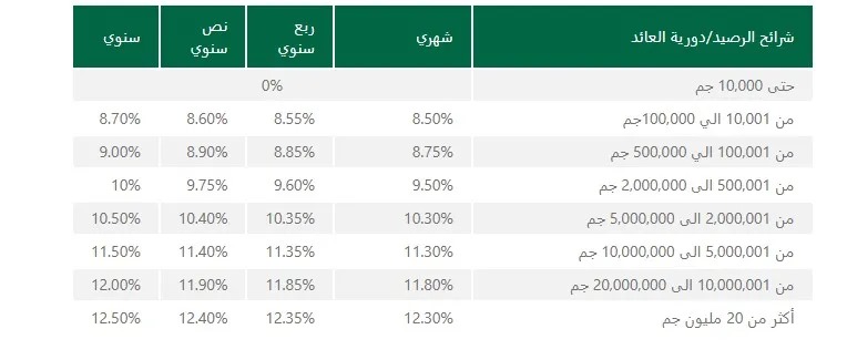 الحد الأدنى لاحتساب العائد: 10,001 جنيه