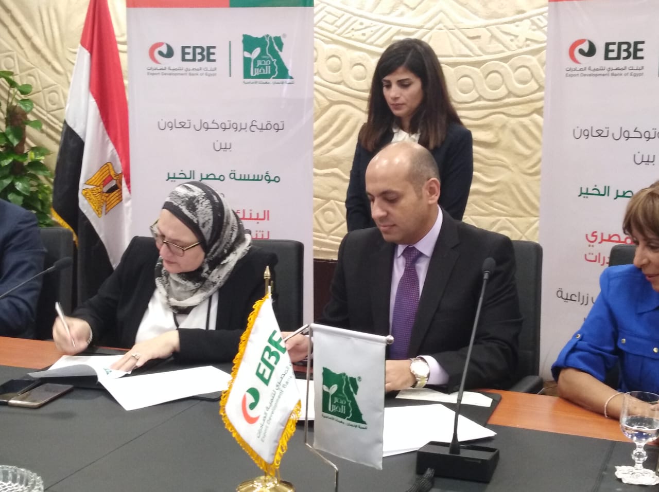 قامت ميرفت سلطان رئيس مجلس إدارة البنك المصري لتنمية الصادرات، بتوقيع بروتوكول تعاون مع مؤسسة مصر الخير، اليوم الخميس، لدعم انشاء 50 صوبة زراعية بطاقة إنتاجية إجمالية 2800 طن خلال الموسم الواحد وتوفير 200 فرصة عمل للشباب، وذلك بحضور الدكتور أحمد جلال، نائب رئيس مجلس إدارة البنك ، و محمد عبد الرحمن، نائب العضو المنتدب لمؤسسة مصر الخير، والمهندسة أمل مبدى، رئيس قطاع تنمية الموارد بمؤسسة مصر الخير.