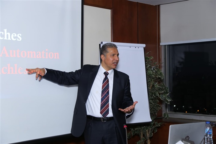 وحاضِر بالدورة عاطف السمان، مستشار برنامج الأمم المتحدة الإنمائي لنظم الدفع والتحول الرقمي، ومستشار التحول الرقمي والشمول المالي بالهيئة القومية للبريد المصري.
