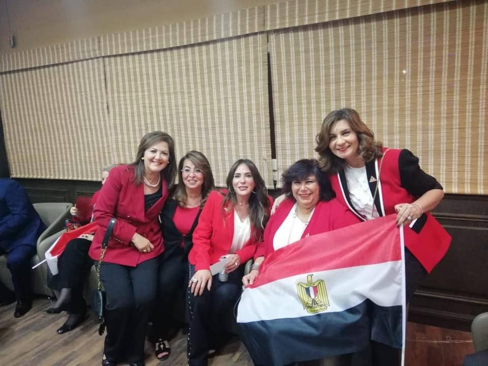 علم مصر، وضمت الصورة: الدكتورة نبيلة مكرم وزيرة الهجرة، هالة السعيد وزيرة التخطيط،