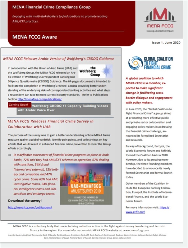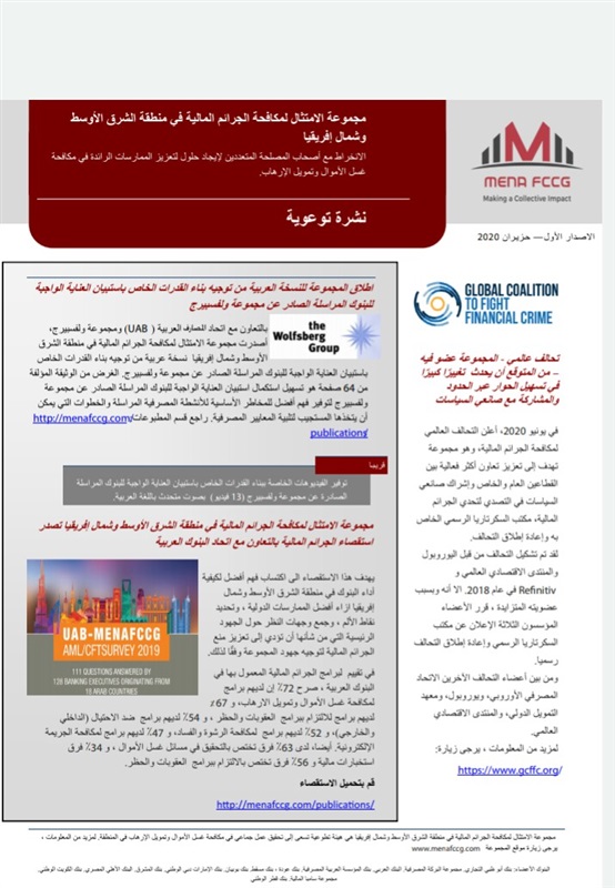 الاخبار مجموعة الامتثال لمكافحة الجرائم المالية في الشرق الأوسط تصدر نشرتها التوعوية النصف سنوية بواسطة بنوك مصر 16 يوليو، 2020 كتب بنوك مصر 16 يوليو، 2020 النشر 0FacebookTwitterPinterestLinkedinWhatsappTelegramCopy LinkEmail 302FacebookTwitterPinterestLinkedinWhatsappTelegramCopy LinkEmail .قامت مجموعة الامتثال لمكافحة الجرائم المالية في منطقة الشرق الأوسط وشمال إفريقيا، برئاسة وسام فتوح، بإصدار النشرة التوعوية النصف سنوية بهدف توفير نبذة عن إنجازات وأنشطة المجموعة. ويرجى العلم أن النشرة تتوفر باللغتين العربية والإنجليزية. النشر 0 FacebookTwitterPinterestLinkedinWhatsappTelegramCopy LinkEmail بالصور .. «الإتربي»: فتح باب الاشتراك في العضوية السنوية بنادي طلعت حرب بـ 3 آلاف جنيه مجلس الوحدة الاقتصادية العربية يصدر كتابا جديدا بعنوان «الاقتصاد الرقمي ودوره في تعزيز الأمن الوطني»