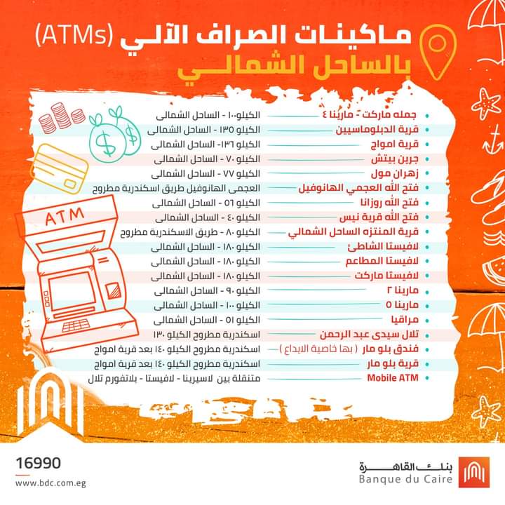 أعلن بنك القاهرة، عبر صفحته الرسمية على موقع التواصل الاجتماعي “فيس بوك”، عن وجود 19 ماكينة الصراف الآلي “ATMs” بمنطقة الساحل الشمالي.