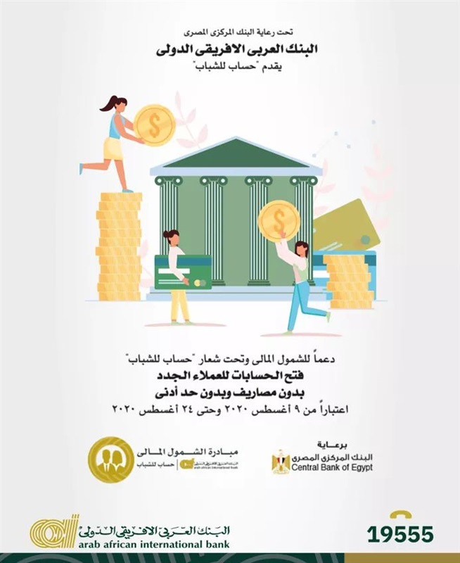 تحت رعاية البنك المركزي المصري، ودعمًا للشمول المالي، أعلن البنك العربي الإفريقي، عبر صفحته الرسمية على موقع التواصل الاجتماعي “فيس بوك”، لعملائه عن “حساب للشباب”، ويتيح إمكانية فتح الحسابات للعملاء الجدد دون مصاريف ودون حد أدنى، وذلك اعتبارًا من 9 أغسطس 2020 وحتى 24 أغسطس 2020.