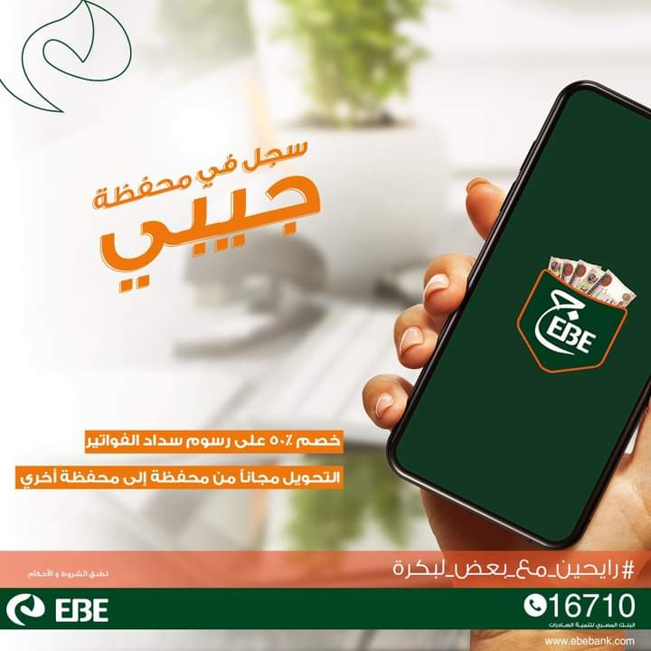 . في إطار فعاليات مبادرة الشمول المالي، أعلن البنك المصري لتنمية الصادرات، عبر صفحته الرسمية على موقع التواصل الاجتماعي “فيس بوك”، عن إمكانية الحصول على 50% خصما على رسوم سداد الفواتير، والتحويل المجاني من محفظة إلى محفظة أخرى، وذلك عند التسجيل في محفظة “جيبي” الإلكترونية التابعة للبنك حتى الغد، الإثنين 24 أغسطس 2020.