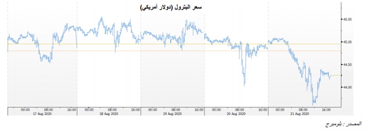 أنهت أسعار النفط تعاملات الأسبوع بانخفاض بلغ 1.0%، حيث أثرت التوقعات الاقتصادية السلبية الواردة بمحضر اجتماع اللجنة الفيدرالية للسوق المفتوحة والتوترات بين الولايات المتحدة والصين بشكل سلبي على توقعات الطلب على النفط رغم الارتفاع الذي سجلته أسعار البترول في وقت سابق من الأسبوع، حيث أظهرت البيانات أن منتجي أوبك + امتثلوا بالكامل تقريبًا لتخفيضات الإنتاج في يوليو.