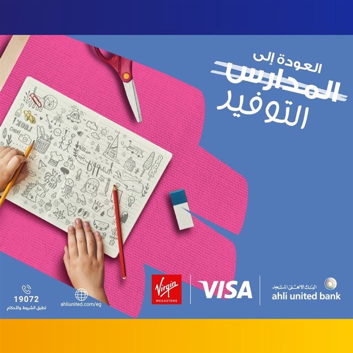 . أعلن البنك الأهلي المتحد، عبر صفحته الرسمية على موقع التواصل الاجتماعي “فيسبوك”، لعملائه عن فرصة الحصول على 15% خصما على مجموعة من اللوازم المدرسية المختارة عند التسجيل في برنامج مكافأة ولاء العملاء “سيركل”، والدفع ببطاقة Visa على المشتريات من Virgin Mega Stores.
