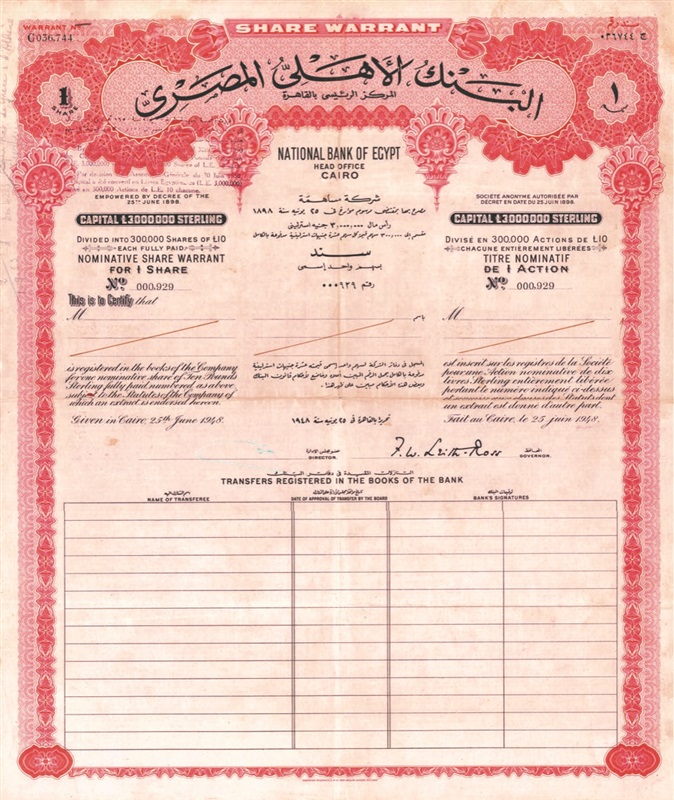 وابتداءًا من 25يونيو 1948 استقبل البنك المساهمين الراغبين في التنازل عن الصكوك من خلال مكاتب البنك في القاهرة والإسكندرية ولندن، مع إلزام تسجيل التنازل في سجلات البنك بعد موافقة مجلس الإدارة وإخطار سوق الأوراق المالية بهذه التحويلات.