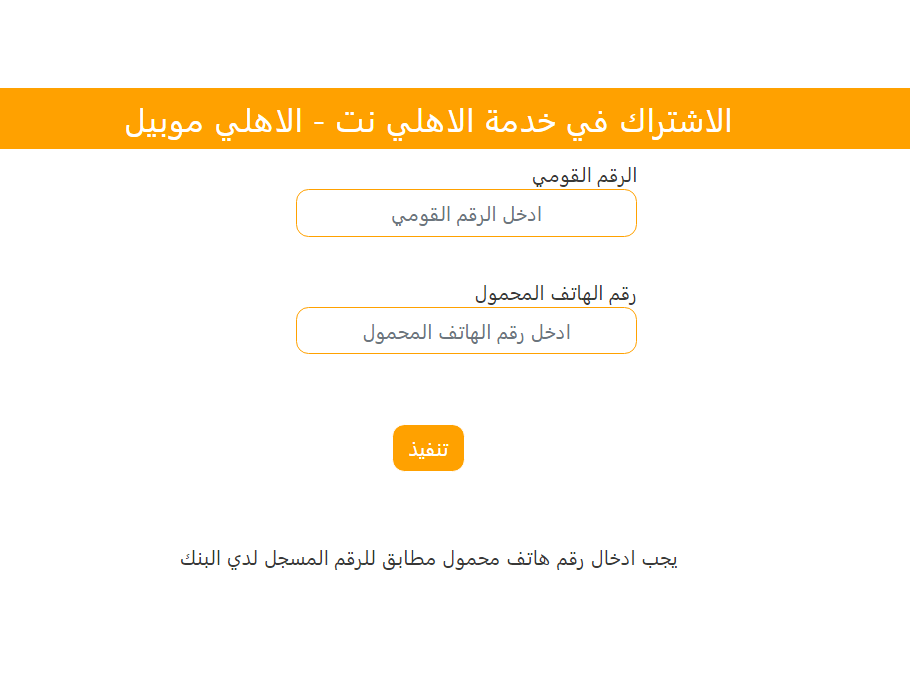 قم بإدخال الرقم القومي وكذلك رقم الهاتف المحمول المطابق للرقم المسجل لدى البنك.