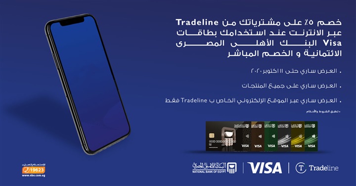 أعلن البنك الأهلي المصري، عبر صفحته الرسمية على موقع التواصل الاجتماعي “فيس بوك”، لعملائه حاملي بطاقات البنك عن أحدث عروضه، خصم 5% على المشتريات من “Tradeline” عبر الإنترنت، ومن خلال الموقع الخاص بـ Tradeline فقط، وذلك عند الدفع باستخدام بطاقات Visa البنك الأهلي المصري الائتمانية، والخصم المباشر.