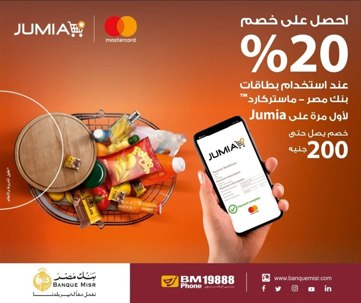 منتجات بنكية مع بطاقات بنك مصر.. استمتع بـ 20% خصما من «Jumia» بواسطة بنوك مصر 27 سبتمبر، 2020 كتب بنوك مصر 27 سبتمبر، 2020 النشر 0FacebookTwitterPinterestLinkedinWhatsappTelegramCopy LinkEmail 346FacebookTwitterPinterestLinkedinWhatsappTelegramCopy LinkEmail .أعلن بنك مصر، عبر صفحته الرسمية على موقع التواصل الاجتماعي “فيس بوك”، لعملائه، عن فرصة الحصول على خصومات تصل إلى 20% من Jumia بحد أقصى 200 جنيه عند استخدام بطاقة مصر ماستركارد لأول مرة، خلال الفترة من 25 وحتى 29 من سبتمبر. النشر 0 FacebookTwitterPinterestLinkedinWhatsappTelegramCopy LinkEmail دون فوائد وعلى 12 شهرا.. قسّط مصروفات التعليم مع بطاقات «التجاري الدولي» من «Jumia».. احصل على 20% خصما عند استخدام بطاقة ماستركارد «الأهلي المصري» لأول مرة