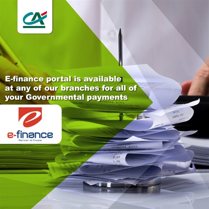 عن طريق بوابة E-FINANCE الإلكترونية المتاحة في أي فرع من فروع “كريدي أجريكول” يمكنك أن تقوم بدفع:
