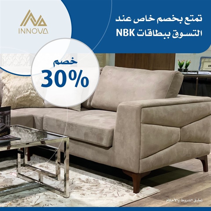 أعلن بنك الكويت الوطني- مصر، عبر صفحته الرسمية على موقع التواصل الاجتماعي “فيس بوك”، لعملائه عن إمكانية الحصول على خصم 30% لأثاث المنزل من “Innova”، وذلك عند استخدام بطاقات “الكويت الوطني”.