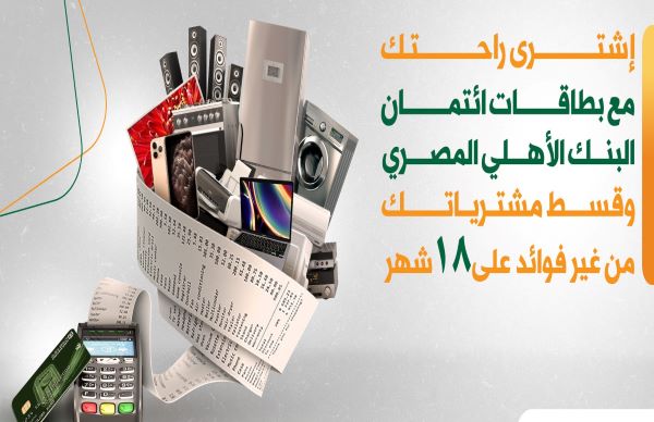 أعلن البنك الأهلي المصري، عبر صفحته الرسمية على موقع التواصل الاجتماعي “فيس بوك”، لعملائه حاملي بطاقات البنك الائتمانية، عن إمكانية تقسيط المشتريات علي 18 شهرا بدون فوائد، مع أكثر من 130 فرع للتجار المشاركين “زانوسي، سيليكت، رزق الله، دبي فون، محلات عبد العزيز، Tradeline، 2B”.