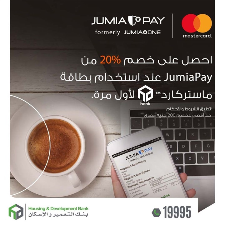 أعلن بنك التعمير والإسكان، عبر صفحته الرسمية على موقع التواصل الاجتماعي “فيس بوك”، لعملائه الجدد، عن إمكانية الحصول على خصم 20% من “جوميا مول” و”جوميا باي”، وذلك عند استخدام بطاقات ماستركارد “التعمير والإسكان” لأول مرة.