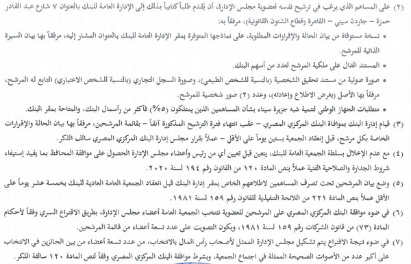 قال بنك قناة السويس، إنه تقرر فتح باب الترشيح لعضوية مجلس الإدارة لدورة جديدة لمدة 3 سنوات اعتباراً من يوم 3 يناير 2021 حتى يوم 10 يناير 2021.