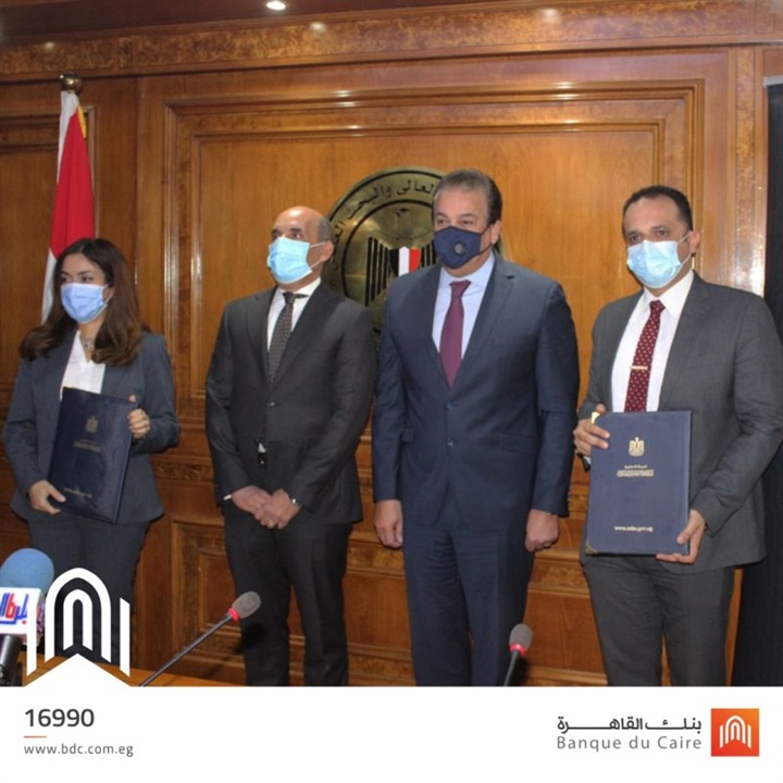 . وقع الدكتور خالد عبدالغفار وزير التعليم العالي والبحث العلمي، اليوم الأحد، بروتوكول تعاون مع طارق فايد رئيس مجلس الإدارة والرئيس التنفيذي لبنك القاهرة، يهدف لتقديم منح دراسية للطلاب المتميزين بالجامعات الأهلية الجديدة وهى: الملك سلمان الدولية، العلمين الدولية، الجلالة، والمنصورة الأهلية الجديدة، بالإضافة إلى إنشاء معمل لتكنولوجيا المعلومات على أحدث النظم الأكثر تطوراً لدعم الطلاب بتلك الجامعات، وذلك بمقر الوزارة.
