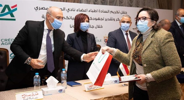 قام بنك كريدي أجريكول- مصر، بتكريم 30 من الأطباء الأعضاء في نادي الصيد المصري ممن كانوا في الصفوف الأمامية في علاج مرضى فيروس كوفيد 19 في المستشفيات العامة الحكومية، وذلك في حفل أقيم بنادي الصيد المصري بحضور ولي الدين لطفي، نائب العضو المنتدب لقطاعات الأعمال ببنك كريدي أجريكول مصر، ومحسن طنطاوي رئيس نادي الصيد المصري، وعدد من قيادات البنك وأعضاء مجلس إدارة النادي.