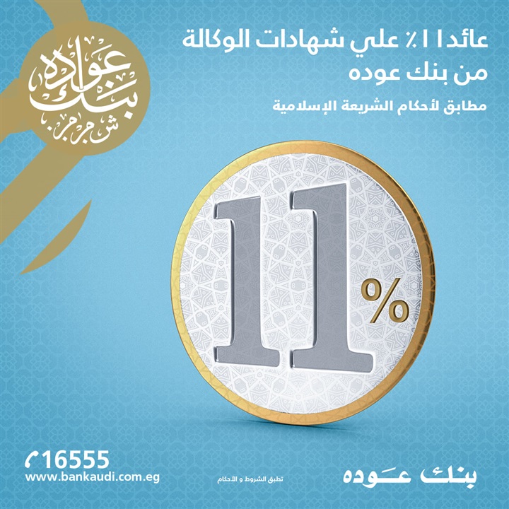 يقدم بنك عوده– مصر، لعملائه شهادة الوكالة الادخارية بالجنيه المصري، ذات العائد الربع سنوي، وبعائد 11%، وبحد أدنى 500 ألف جنيه لربط الشهادة لأول مرة.
