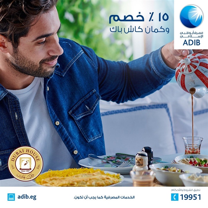 أعلن مصرف أبو ظبي الإسلامي- مصر، عبر صفحته الرسمية على موقع التواصل الاجتماعي “فيس بوك”، لعملائه عن إمكانية الحصول على خصم 15% بدون حد أقصى من مطعم ” Dubai House”، بالإضافة إلى الكاش باك المعتاد بحد أدنى 150 جنيها، وذلك باستخدام كروت أبوظبي الإسلامي المغطاة والخصم المباشر.