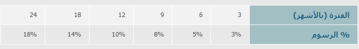 يتم تحديد الرسوم وفقاً لفترة التقسيط.