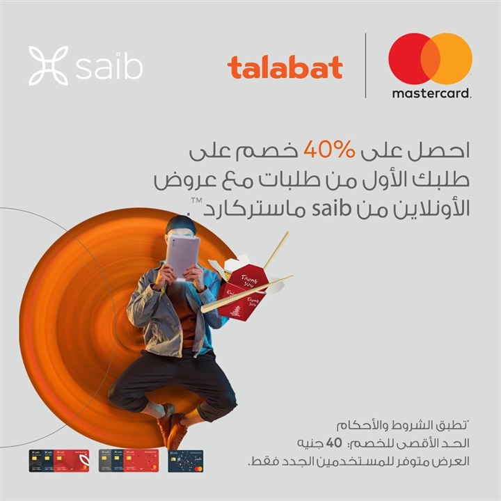 منتجات بنكية ببطاقات ماستركارد «saib».. احصل على خصم 40% من «Talabat» بواسطة بنوك مصر 22 ديسمبر، 2020 كتب بنوك مصر 22 ديسمبر، 2020 النشر 0FacebookTwitterPinterestLinkedinWhatsappTelegramCopy LinkEmail 419FacebookTwitterPinterestLinkedinWhatsappTelegramCopy LinkEmail .أعلن بنك الشركة المصرفية العربية saib، عبر صفحته الرسمية على موقع التواصل الاجتماعي “فيس بوك”، لعملائه عن إمكانية الحصول على خصم 40% من تطبيق “Talabat” للطلب الأول، بحد أقصى 40 جنيها، وذلك للمستخدمين الجدد لبطاقات ماستركارد لمرة واحدة فقط.ويُرجى العلم أن العرض سارٍ حتى 31 يناير 2021. النشر 0 FacebookTwitterPinterestLinkedinWhatsappTelegramCopy LinkEmail ارتفاع «الإسترليني» و«اليورو» في ختام تعاملات الثلاثاء «الأهلي المصري» يهنئ فريق البنك الأهلي على أول فوز في الدوري الممتاز