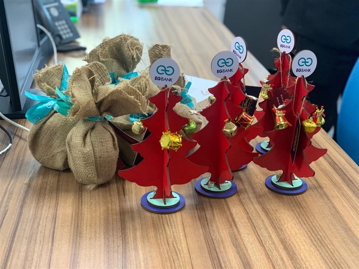 حيث قام البنك بتوزيع الهدايا الرمزية على موظفيه بحضور سانتا كلوز، وشارك الموظفون بعمل تمبولا أونلاين وتأليف أغاني لسنة 2020.