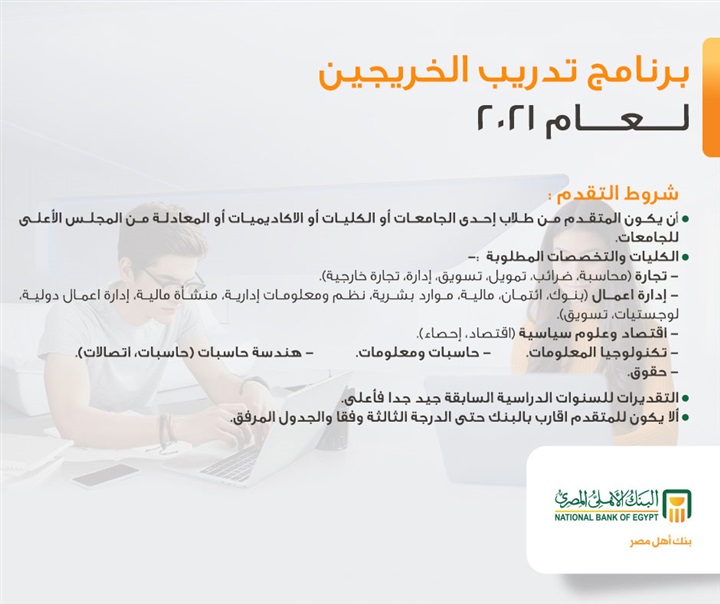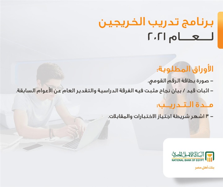 أعلن البنك الأهلي المصري، عبر موقعه الرسمي، عن فتح باب التقديم لبرنامج تدريب خريجين عام 2021.