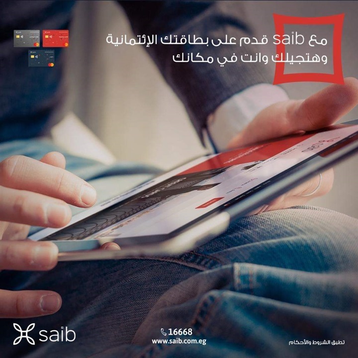 . أعلن بنك الشركة المصرفية العربية saib، عبر صفحته الرسمية على موقع التواصل الإجتماعي “فيس بوك”، لعملائه عن إمكانية التقديم أونلاين على البطاقات الائتمانية، وملئ الاستمارة، وذلك دون ضرورة الذهاب إلى البنك، ويتم توصيلها إلى المنزل بمنتهى السهولة واليسر.