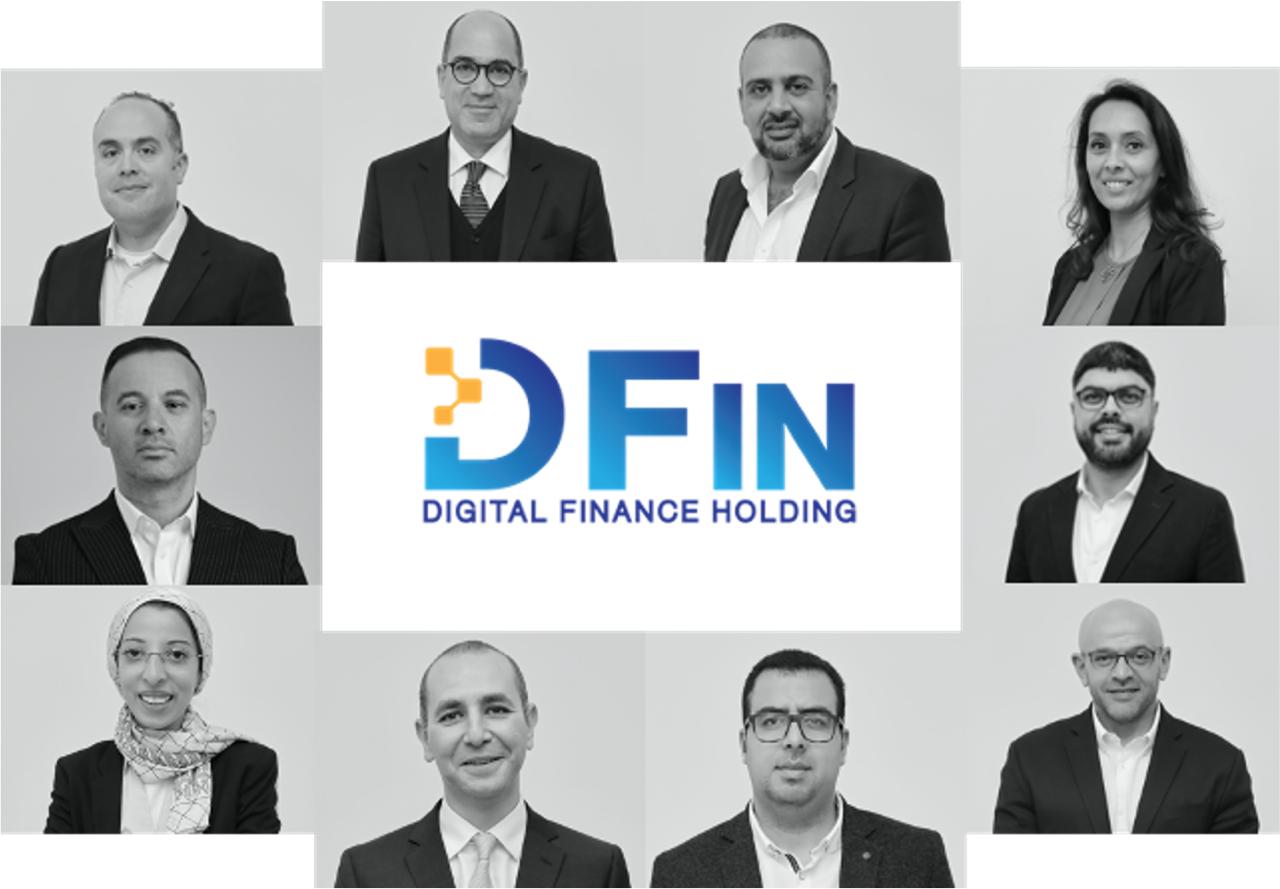وتتكون شركة التمويل الرقمى القابضة DFin Holding من فريق متعدد التخصصات من ذوي الخبرات على المستوى المحلي والأقليمي والعالمي متخصصين في الخدمات المالية المصرفية وغير المصرفية والمحاسبة والتكنولوجيا والذكاء الإصطناعي ورأس المال المخاطر والشركات الناشئة بجانب عملهم البحثي والأكاديمي، حيث أنشئت الشركة قاعدة واعدة للإستفادة من المرحلة الجديدة من الخدمات المالية الرقمية المبتكرة في مصر وعبر الأسواق الناشئة في المنطقة.