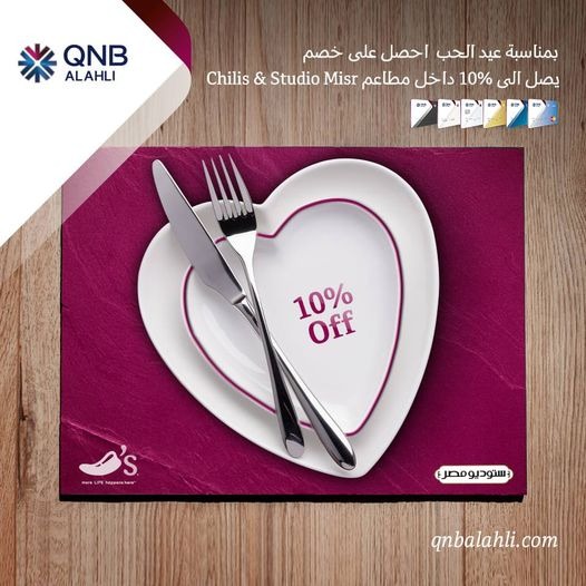 منتجات بنكية خصم 10% في «Chilis» و«Studio Misr» مع بطاقات «QNB» بواسطة بنوك مصر 14 فبراير، 2021 كتب بنوك مصر 14 فبراير، 2021 النشر 0FacebookTwitterPinterestLinkedinWhatsappTelegramCopy LinkEmail 355FacebookTwitterPinterestLinkedinWhatsappTelegramCopy LinkEmail .بمناسبة عيد الحب، أعلن بنك QNB الأهلي – مصر، عبر صفحته الرسمية على موقع التواصل الاجتماعي “فيس بوك”، لعملائه عن إمكانية الحصول على خصم يصل إلى 10% في مطاعم Chilis و Studio Misr، وذلك عند الدفع باستخدام بطاقات “QNB الأهلي” حتى يوم 10 إبريل. النشر 0 FacebookTwitterPinterestLinkedinWhatsappTelegramCopy LinkEmail مع بطاقات بنك المشرق.. احصل على خصومات تصل لـ40% بمناسبة عيد الحب في مجموعة من المتاجر خصم يصل لـ25% بمناسبة عيد الحب في عدد من المتاجر مع بطاقات بنك كريدي أجريكول