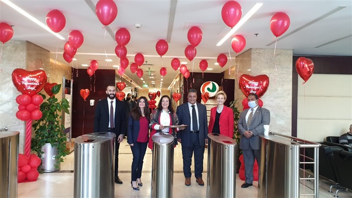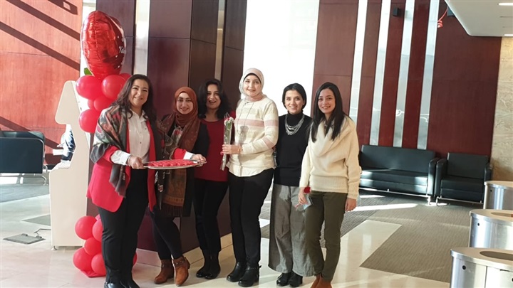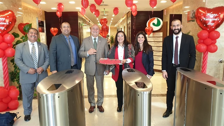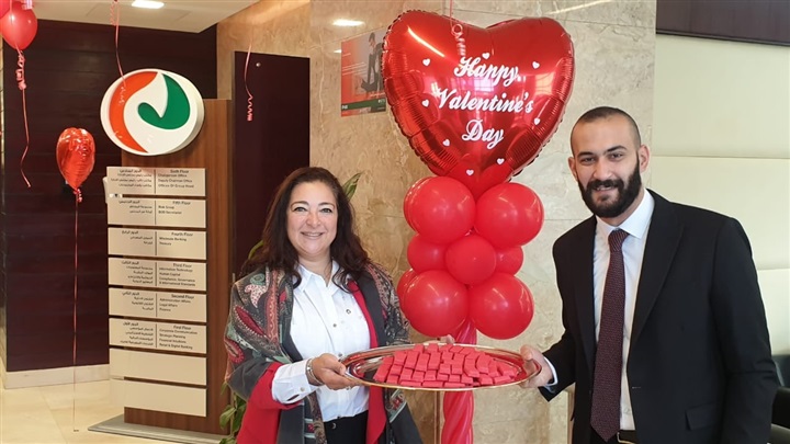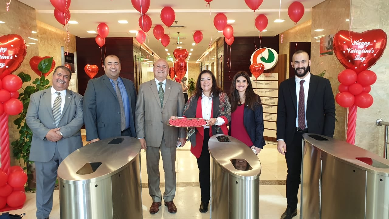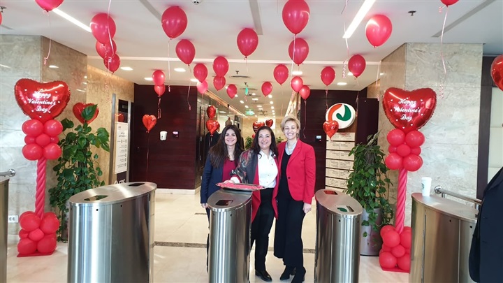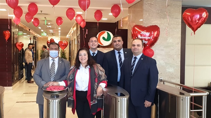 وقام البنك باستقبال العاملين بالمبني الرئيسي اليوم بتقديم الشوكولاتة وسط جو من المرح حيث تزين البنك باللون الأحمر إبتهاجًا بعيد الحب.