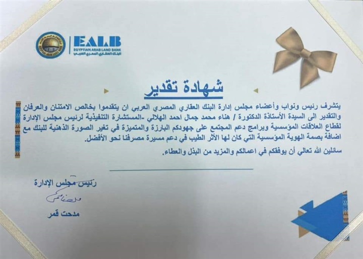 وأكدت “الهلالي”، من خلال صفحتها علي مواقع التواصل الإجتماعي، اختتم مسيرة عطاء دامت 3 سنوات كمستشار تنفيذى لرئيس مجلس إدارة البنك العقاري المصري العربي لقطاع الاتصال المؤسسي هذا الكيان العريق الذي يعد أقدم البنوك المصرية لبدء مسيرة عطاء أخرى.
