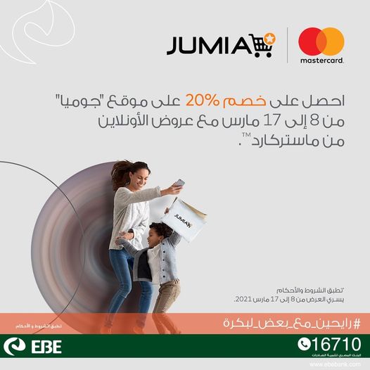 . أعلن البنك المصري لتنمية الصادرات، عبر صفحته الرسمية على موقع التواصل الاجتماعي “فيس بوك”، لعملائه عن فرصة الحصول على خصم 20% من موقع جوميا بحد أقصى 100 جنيه، عند الشراء من موقع جوميا، وذلك عند استخدام بطاقات ماستركارد بنك تنمية الصادرات.