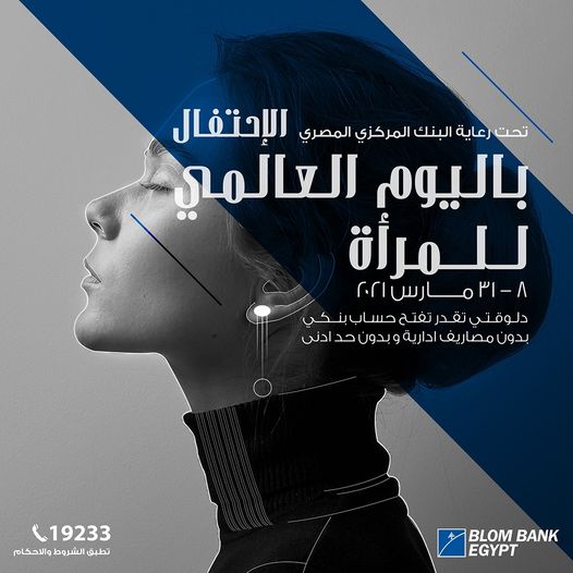 . تحت رعاية البنك المركزي المصري وبمناسبة اليوم العالمي للمرأة، أعلن بنك بلوم- مصر، عبر صفحته الرسمية على موقع التواصل الاجتماعي “فيس بوك”، عن إمكانية فتح حساب بنكي مجانًا بدون مصاريف إدارية، وبدون حد أدنى، بالإضافة إلى إمكانية الإشتراك مجانًا في BLOM Wallet، وذلك خلال الفترة من 8 حتى 31 مارس الجاري.