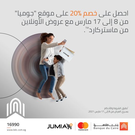 منتجات بنكية بمناسبة عيد الأم.. احصل على خصم 20% من «جوميا» ببطاقات ماستركارد بنك القاهرة بواسطة بنوك مصر 9 مارس، 2021 كتب بنوك مصر 9 مارس، 2021 النشر 0FacebookTwitterPinterestLinkedinWhatsappTelegramCopy LinkEmail 373FacebookTwitterPinterestLinkedinWhatsappTelegramCopy LinkEmail .بمناسبة عيد الأم، أعلن بنك القاهرة، عبر صفحته الرسمية على موقع التواصل الاجتماعي “فيس بوك”، لعملائه عن فرصة الحصول على خصم 20% من موقع “جوميا”، بحد أقصى 100 جنيه لمعاملة واحدة فقط للمستخدمين الجدد، وذلك عند الدفع ببطاقات ماستركارد بنك القاهرة . النشر 0 FacebookTwitterPinterestLinkedinWhatsappTelegramCopy LinkEmail بمناسبة اليوم العالمي للمرأة بنك عودة.. يتيح فتح حساب مجانا بدون مصاريف بالصور.. البنك العربي الإفريقي يوزع هدايا على موظفاته بمناسبة اليوم العالمي للمرأة
