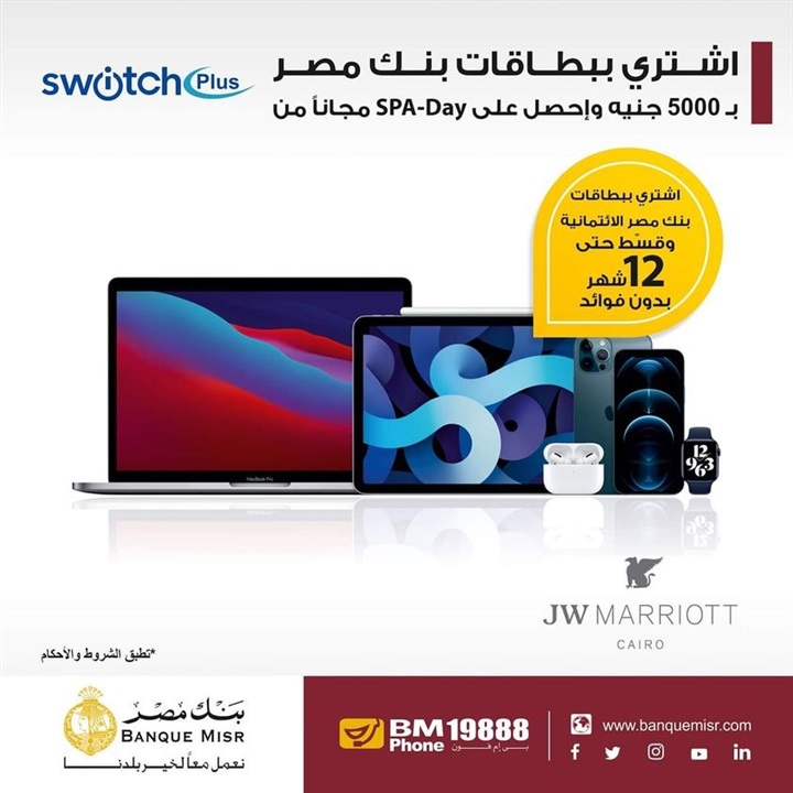 أعلن بنك مصر، عبر صفحته الرسمية على موقع التواصل الاجتماعي “فيس بوك”، لعملائه عن فرصة الحصول على SPA – Day مجانا في JW MARRIOTTKK ، وذلك عند الشراء ببطاقات البنك من switch plus بقيمة تبلغ 5000 جنيه، بالإضافة إلى إمكانية الشراء والتقسيط ببطاقات بنك مصر الائتمانية حتى 12 شهرا بدون فوائد.