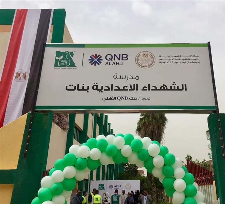 اختتم بنك QNB الأهلي، ومؤسسة مصر الخير، فعاليات تطوير مدرسة الشهداء الإعدادية للبنات بمحافظة الإسماعيلية؛ لإتاحة الخدمات التعليمية لـ 550 طالبة كما تعد تلك المدرسة الوحيدة المخصصة للفتيات في تلك المنطقة؛ مما يساهم بشكل كبير في توفير الخدمات التعليمية لأبناء تلك المنطقة.