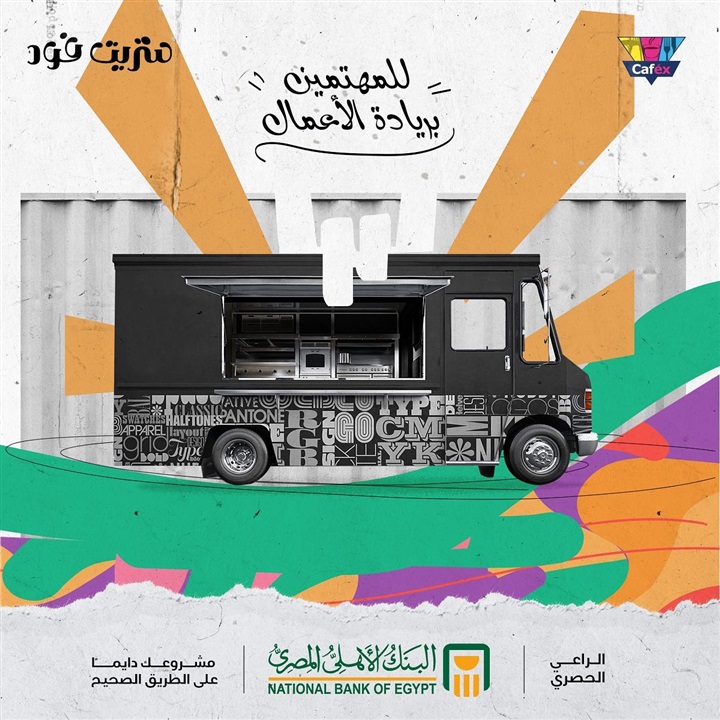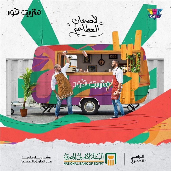 يقوم البنك الأهلي المصري، الراعي الحصري لمشروع سيارات المأكولات “food trucks”، لأول مرة في مصر، بتمويل المشروع لرواد الأعمال في مجال سيارات المأكولات الجاهزة وتنفيذ مقطورات مع أكبر المصنعين في مصر وفرص تمويلية كثيرة، يأتي ذلك من خلال معرض “كافيكس” وهو المعرض الأول لكل ما يتعلق بمستلزمات وتجهيزات المطاعم فى مصر.