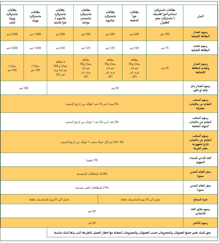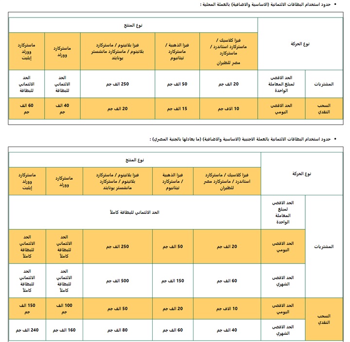 الحد الائتماني المتاح للاستخدام في السحب النقدي: 40 ألف جنيه يوميا.