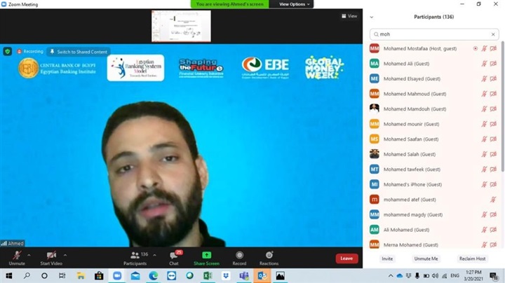 قام قطاع التخطيط الاستراتيجي بالبنك المصري لتنمية الصادرات بالتعاون مع نموذج النظام المصرفي المصري EBSM بعقد محاضرات لشباب الجامعات عن طريق تقنية “Video Conference”؛ لتعريفهم بطبيعة الأعمال المصرفية داخل البنوك خلال الفترة من 27 مارس حتى 1 ابريل 2021.