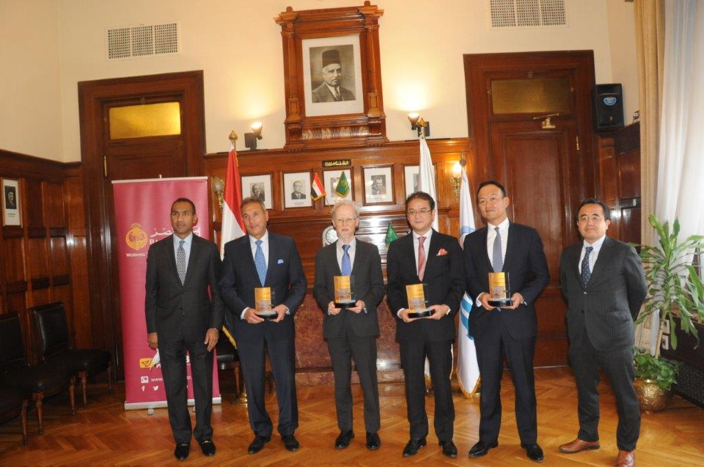 عقدت مراسم الاحتفال بما في ذلك توزيع درع مكتب جايكا في 4 ابريل 2021، برئاسة محمد الإتربي، رئيس مجلس إدارة بنك مصر، وعاكف المغربي، نائب رئيس مجلس إدارة بنك مصر، ومصطفى جمال رئيس قطاع الأموال والمراسلين ببنك مصر، واومورا يوشيفومي، الممثل الرئيسي لمكتب جايكا في مصر، وجون سايتو، الرئيس الإقليمي لمؤسسة سوميتومو ميتسوي المصرفية في الشرق الاوسط، وشهد الاحتفال نوكي مساكي، سفير اليابان في مصر، وماتسوناجا هيديكي، مدير جايكا للشرق الأوسط وأوروبا، والدكتور هاني هلال، وزير التعليم العالي الأسبق ومستشار الجايكا.
