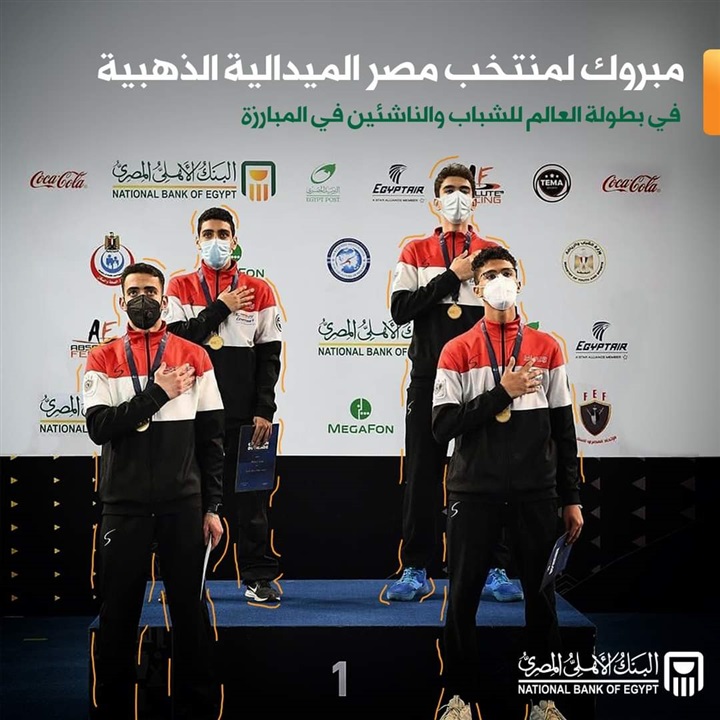 . هنأ البنك الأهلي المصري، عبر صفحته الرسمية على موقع التواصل الإجتماعي “فيس بوك”، لاعبي منتخب الشباب لفوزهم بالمركز الأول في بطولة العالم للشباب والناشئين في المبارزة وحصولهم على الميدالية الذهبية.